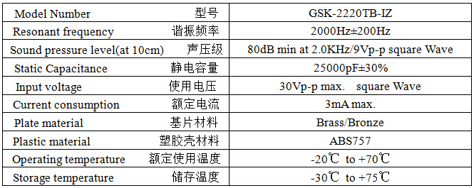 產(chǎn)品名稱: 壓電式無源蜂鳴器 22mm 2.0KHz插針