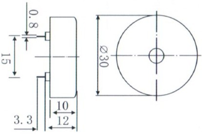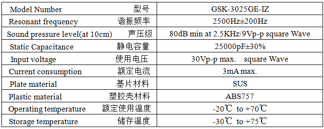 產(chǎn)品名稱: 壓電式無源蜂鳴器 30mm 2.5KHz插針